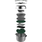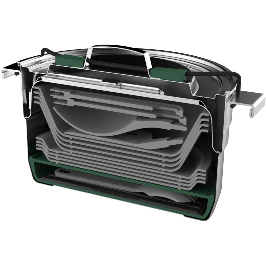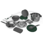 Kamp mutfağınızı bir üst seviyeye taşıyın! Bu 21 parçalık pişirme seti ile bir mutfakta ihtiyacınız olabilecek her şey, minik evinizde, yurt odanızda, kamp alanınızda veya karavanınızda. Paslanmaz çelik tencere ve 3 katmanlı kızartma tavanız mükemmel işlev görür ve yiyeceklerinizin eşit şekilde ısınmasını sağlar. Hazırlama, pişirme, servis yapma ve temizleme için gereken her şey elinizin altında. O kadar güzel ki evde bile kullanmak isteyebilirsiniz.